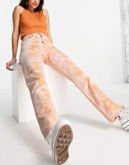 Wide High Waist Jeans Orange Tie Dye H M Cn